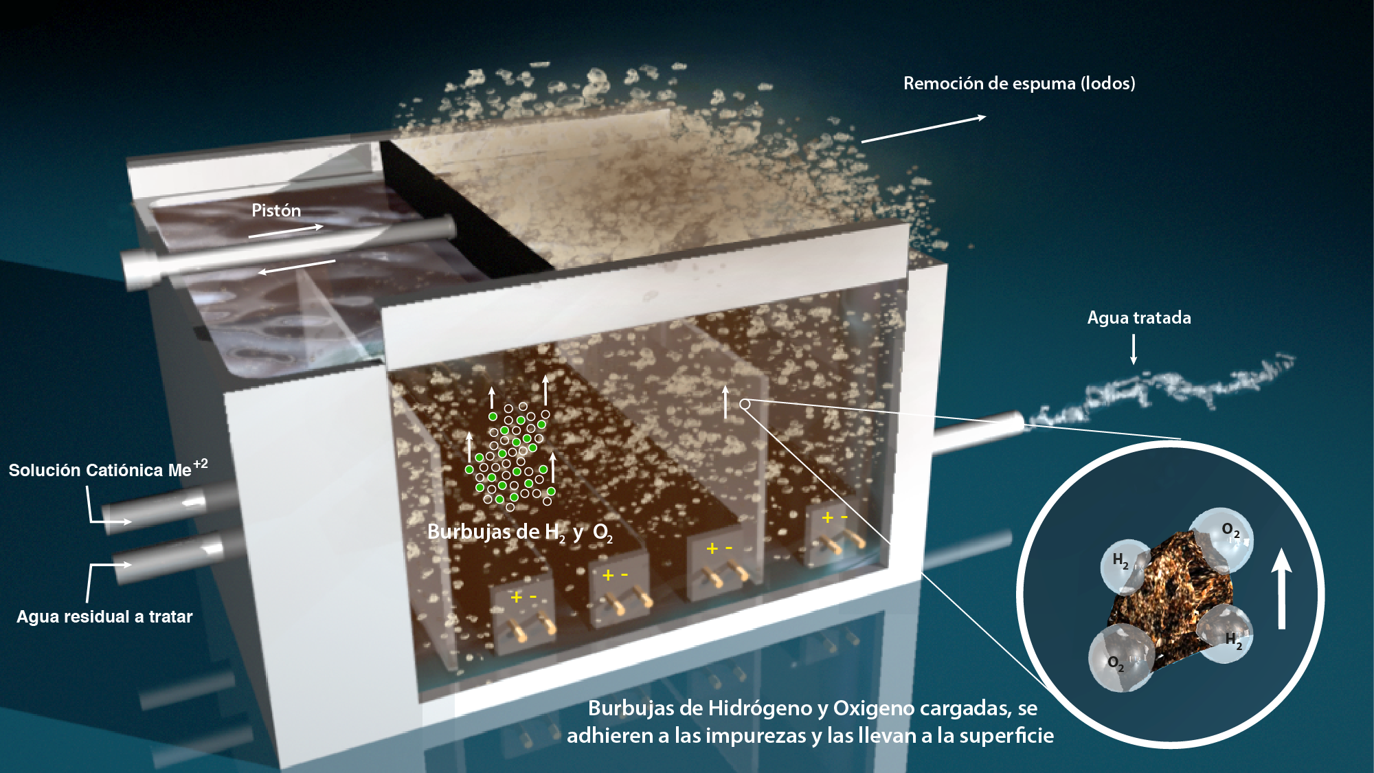 La intensidad de corriente, el área de las placas, el material y otras variables son fundamentales para diseñar un electroflotador de excelente rendimiento, en donde las burbujas arrastran a la superficie las impurezas en forma de espuma, la que finalmente es removida.
